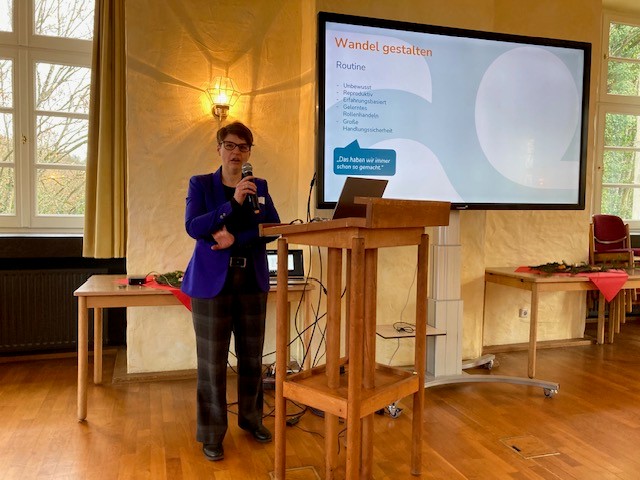 Zu Beginn gab Frau Dr. Miriam Zimmer vom Zentrum für angewandte Pastoralforschung (ZAP) in Bochum wichtige Impulse. Sie stellte Eckpunkte vor, die verdeutlichen, wie sehr sich Kirche in einer sich wandelnden Gesellschaft neu ausrichten muss. Schrumpfende Ressourcen und veränderte Erwartungen machten dies nicht nur notwendig, sondern eröffneten auch Chancen für neue Formen kirchlicher Präsenz.